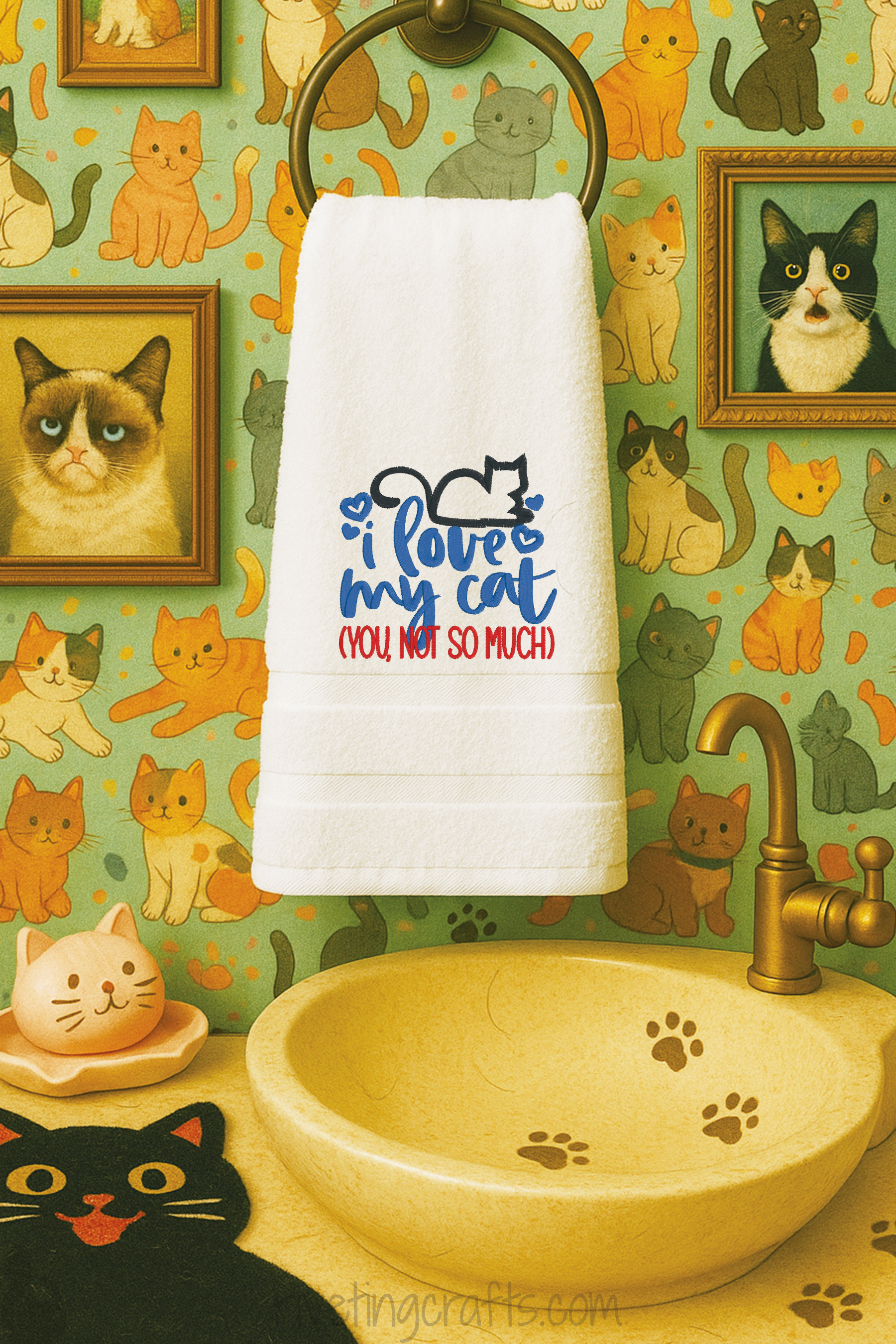 Funny Cat Hand Towel – “I Love My Cat You Not So Much”