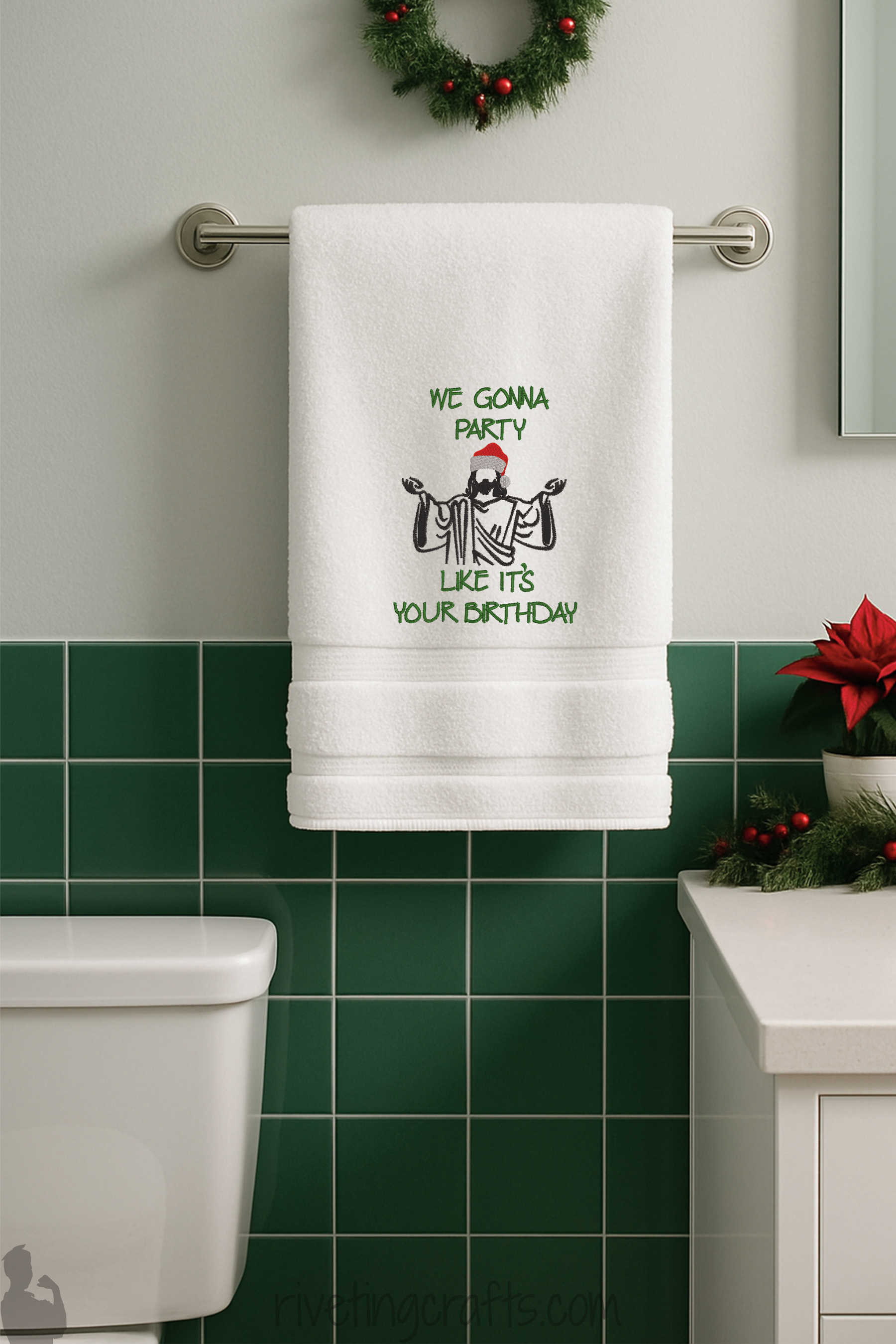 Funny Christmas Hand Towel - "We Gonna Party Like It's Your Birthday"