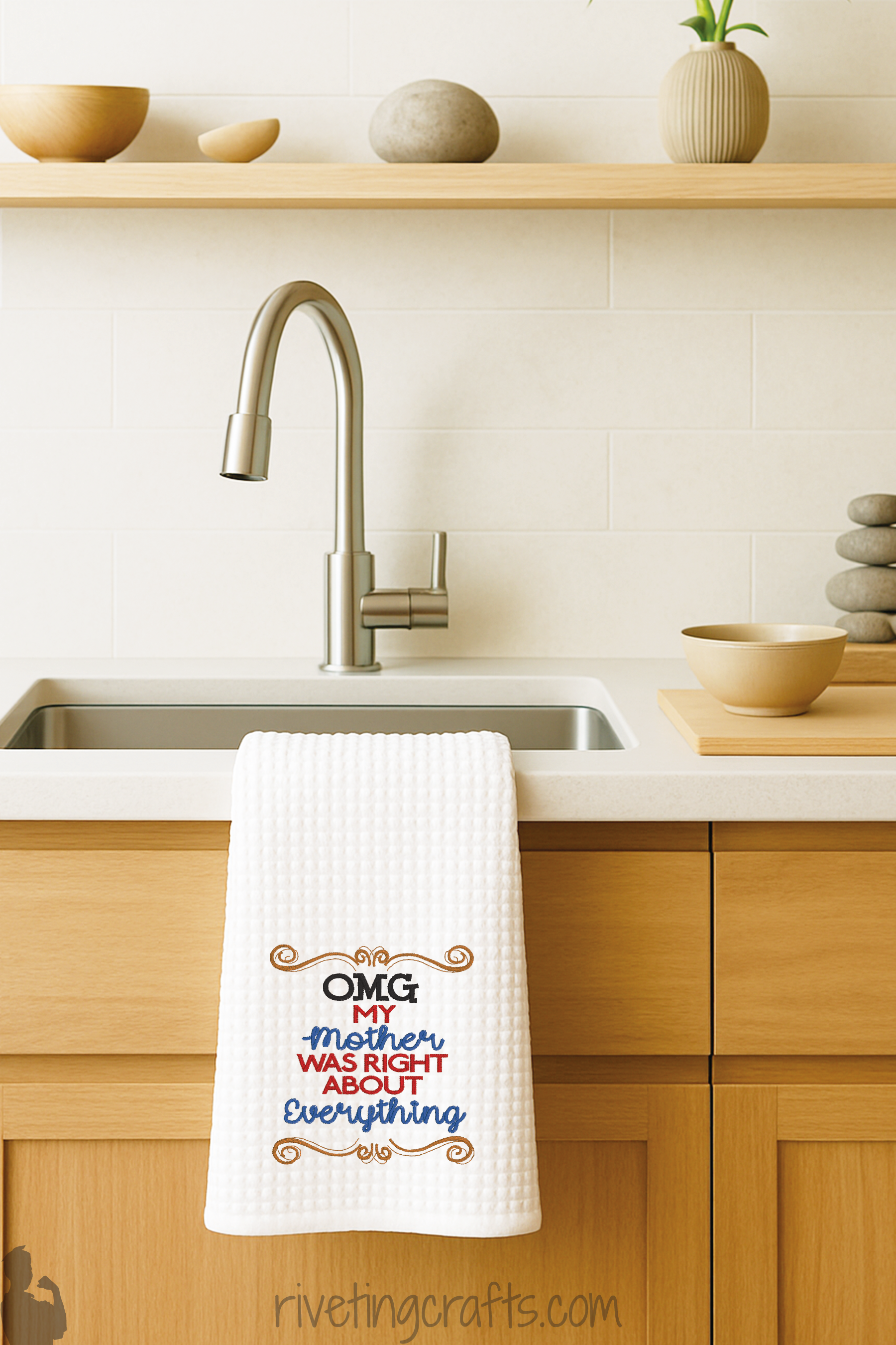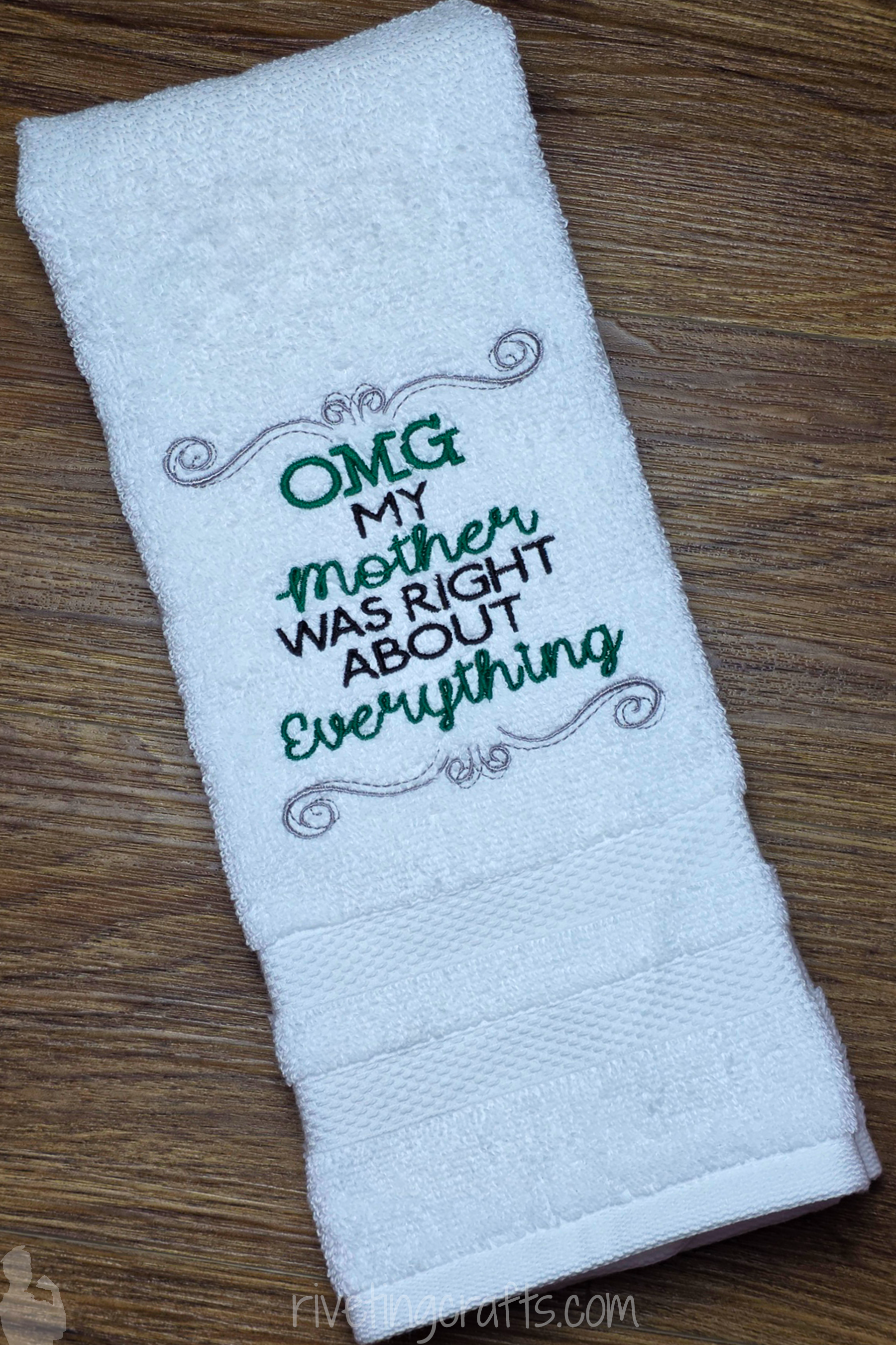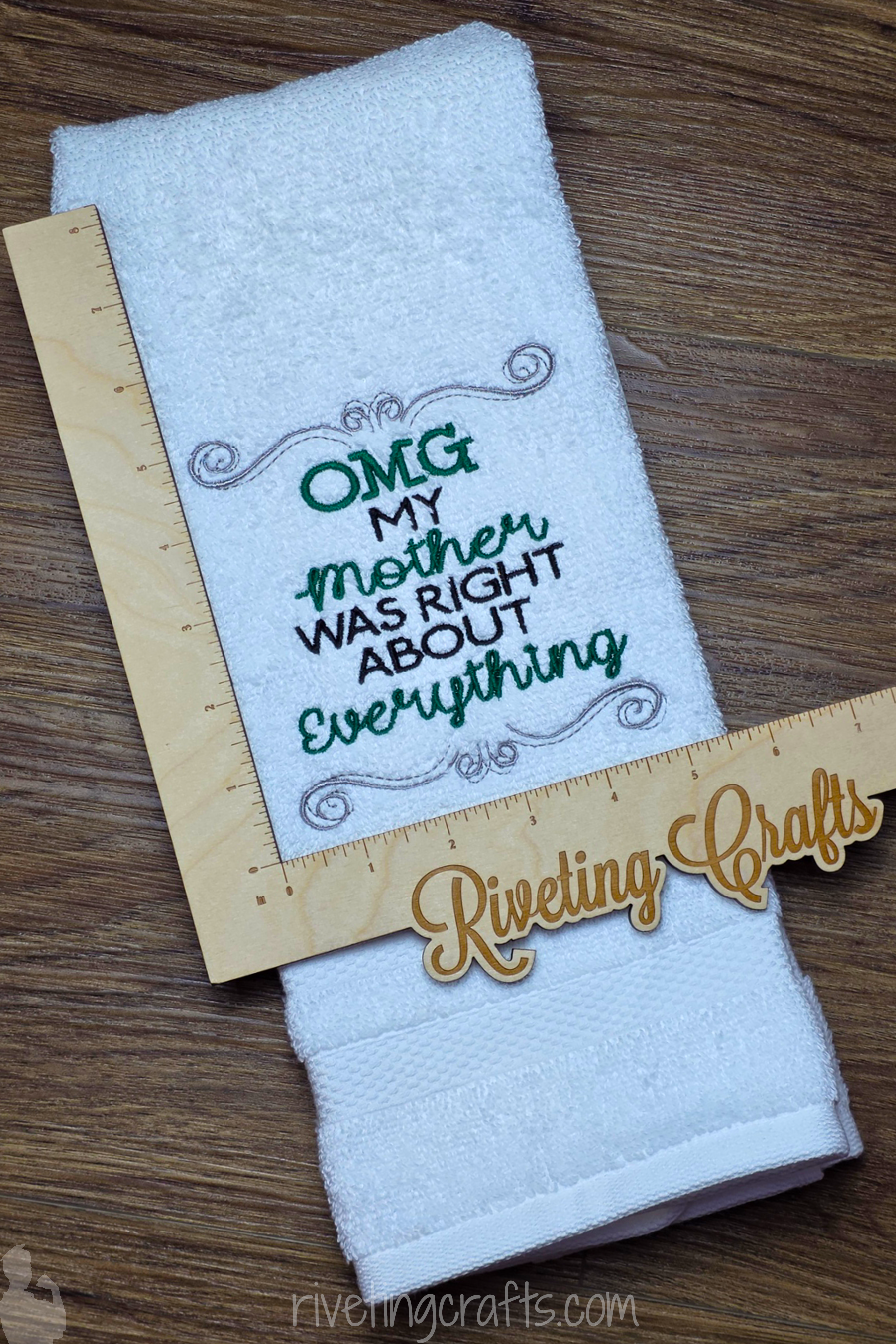 Own the truth with a towel that backs Mom up, and check out RivetingCrafts.com for more mother-approved mischief and be sure to follow Riveting Crafts on Facebook for sneak peeks, giveaways, and all things gloriously handmade.