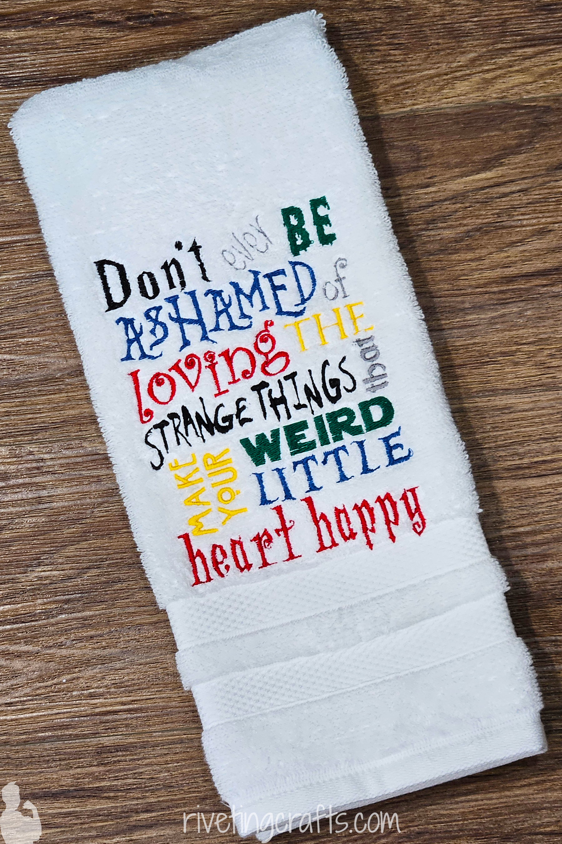 • All designs are handmade to order—no two towels (or weird little hearts) are exactly alike